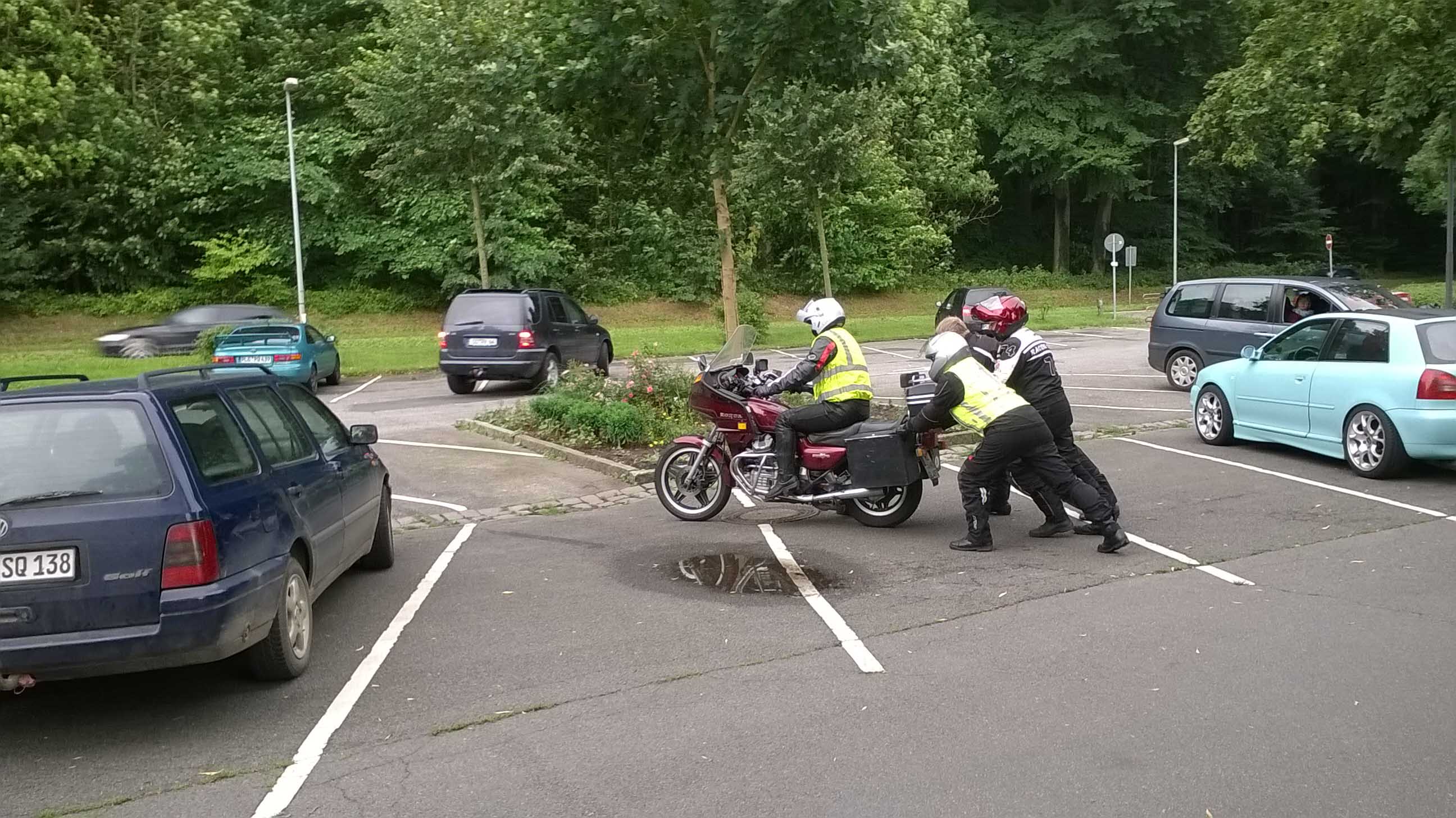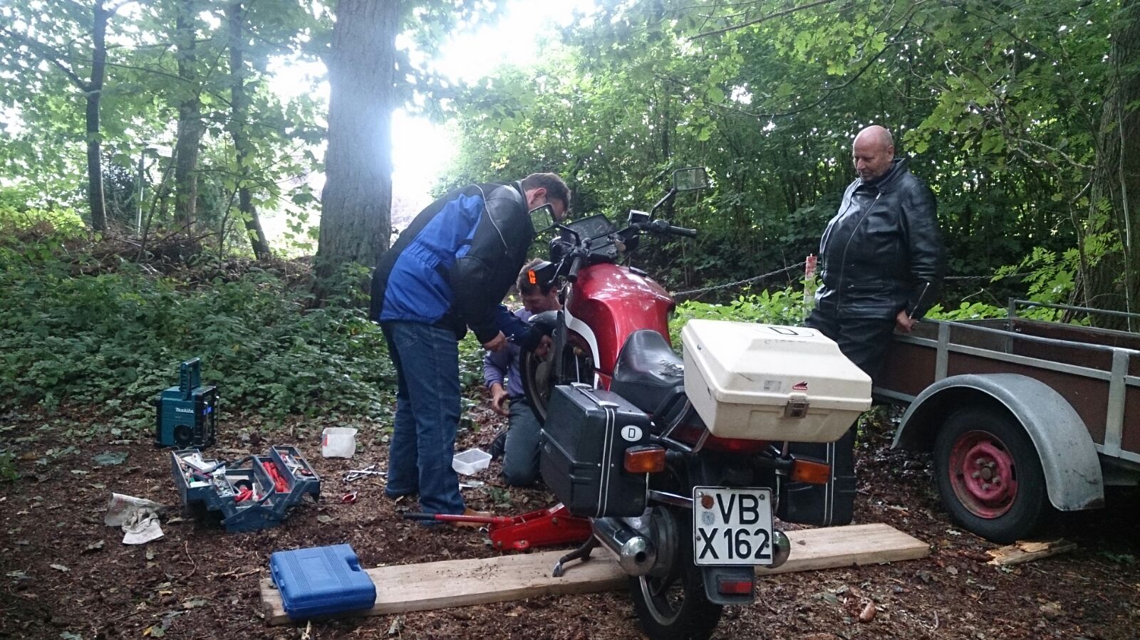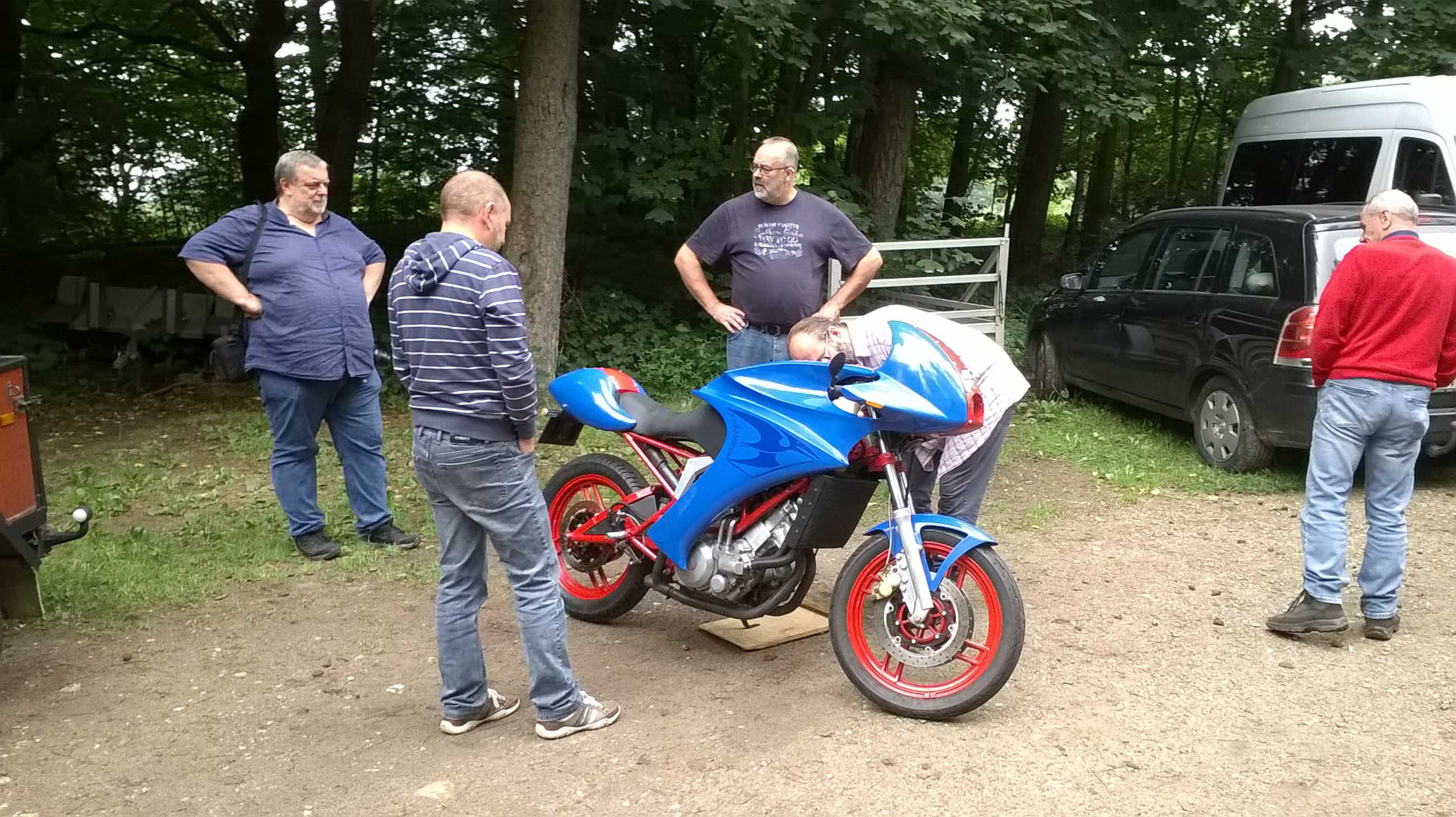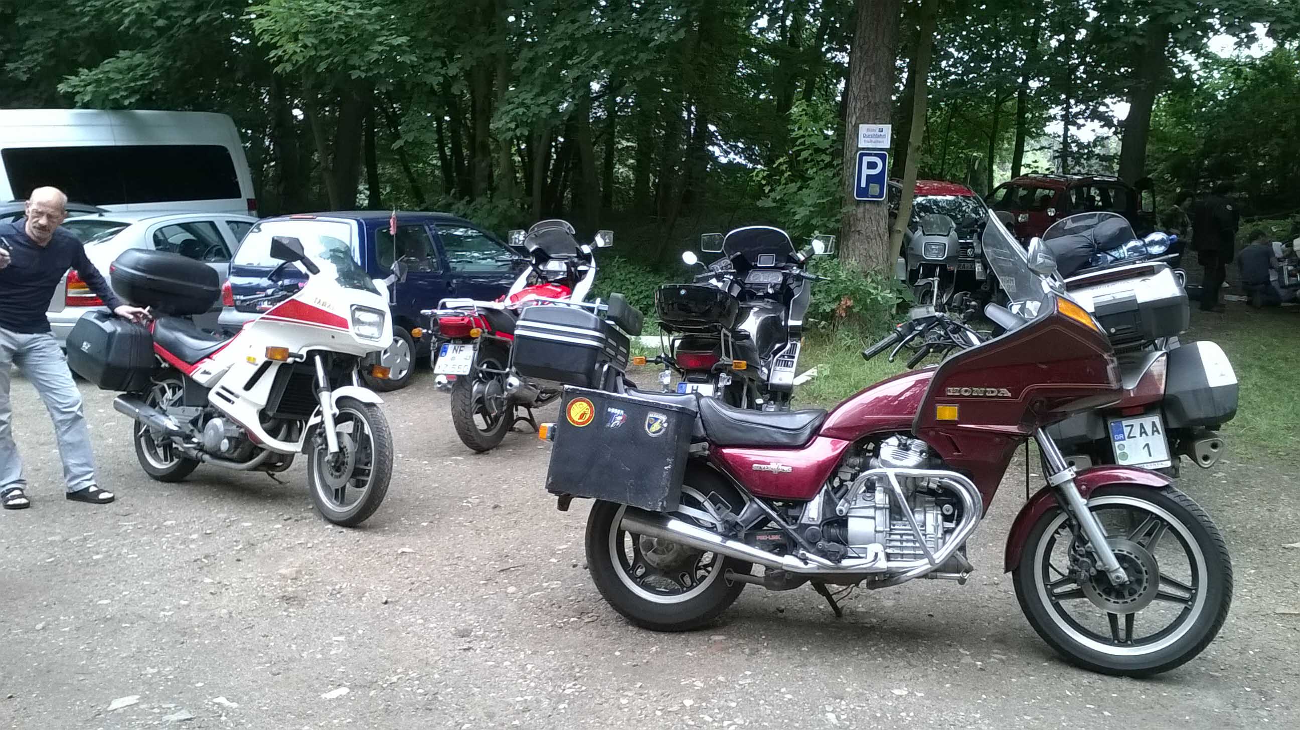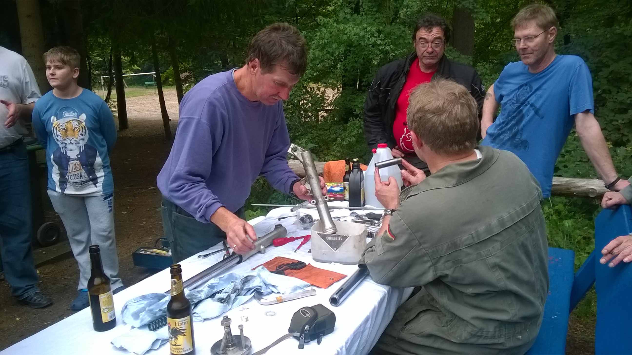 Neben Wollis Gabel-Workshop, er kam mit zerlegter Gabel zum Treffen - und konnte tagsdrauf an der Ausfahrt teilnehmen, konnten wir zum ersten mal unsere Freunde aus Griechenland begrüßen.